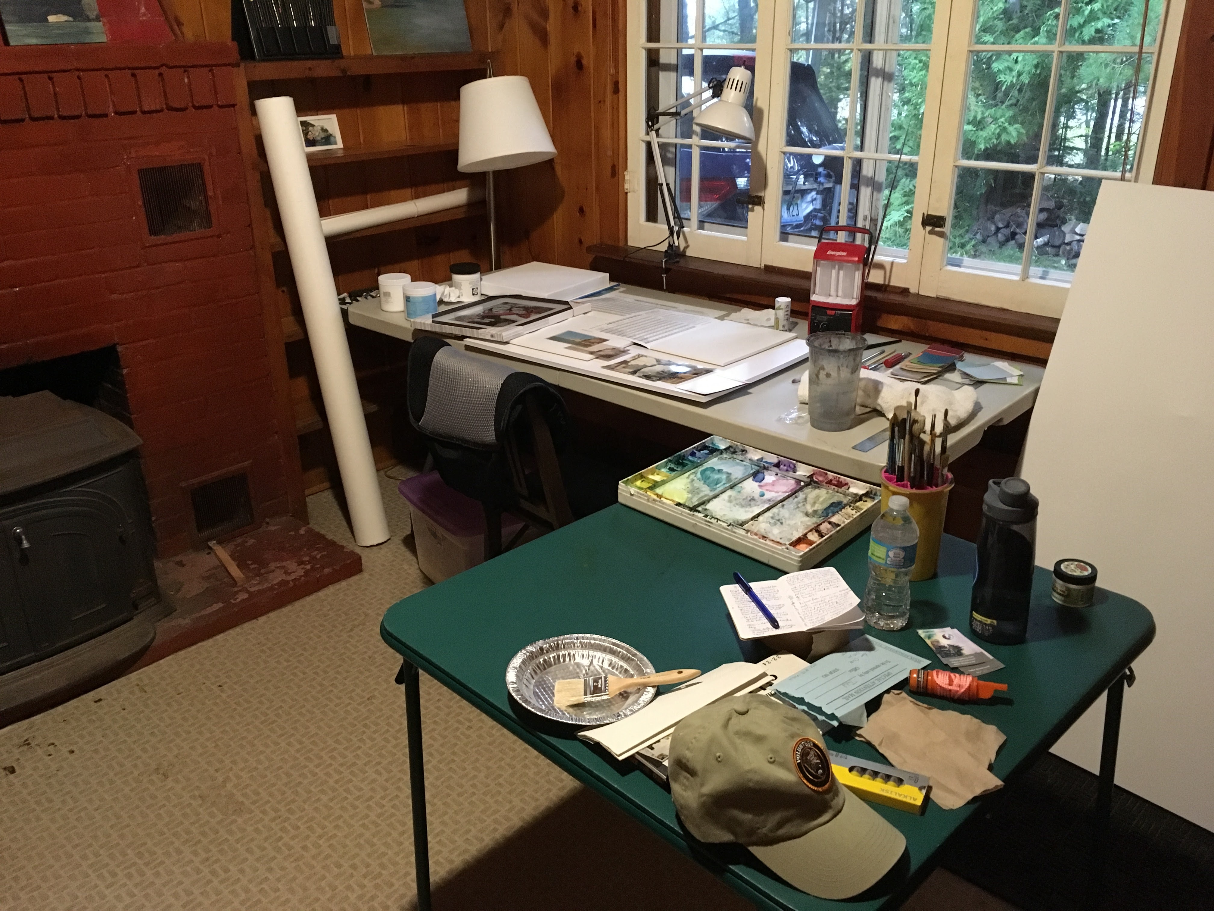 Space was not an issue with one person. Sullivan’s cabin was larger than I thought and I was able to move things around for my studio.